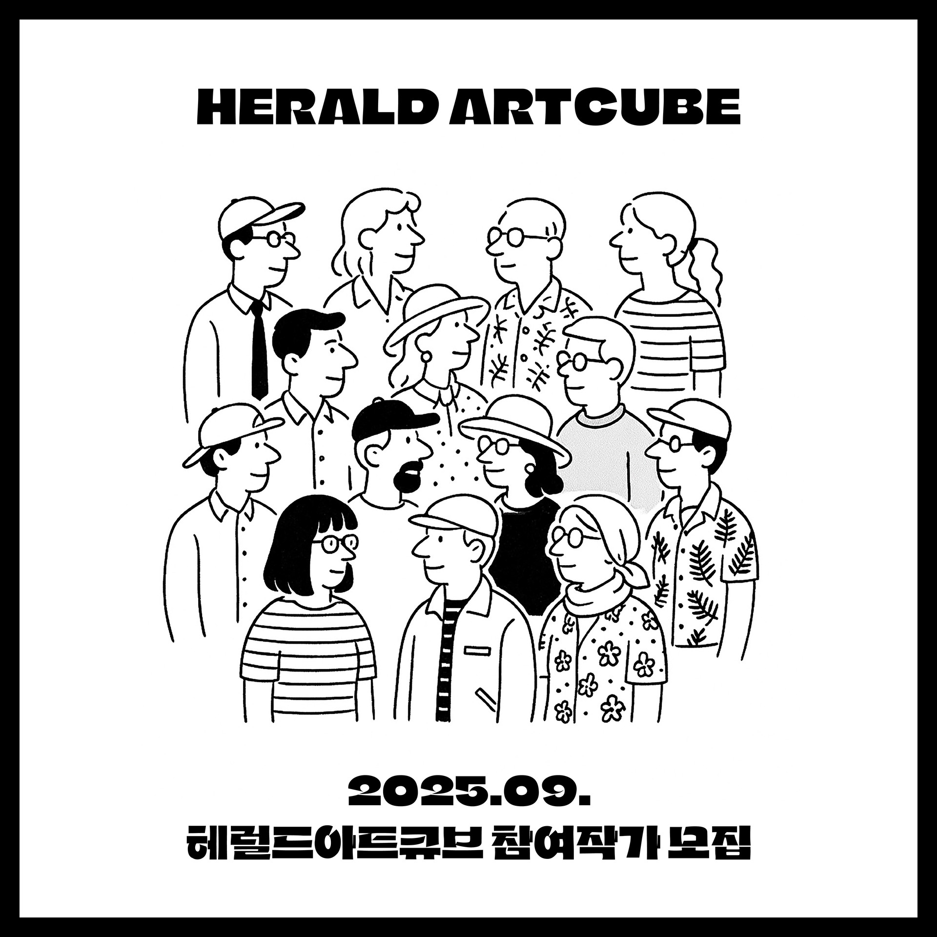 전시 설치: 9월 12일/ 전시 철수: 9월 29일 장소: 헤럴드갤러리 (서울 용산구 후암로4길 10, 헤럴드스퀘어 L2층) 모집 인원: 18명 주제: 다양한 관점으로 바라본 모든 일상 및 사회에 대한 시선을 표현하는 자유 주제 재료: 영상매체를 제외한 모든 작품, 레일을 이용한 행잉 작품 불가 참여비: 30만원 (선정 시 납부) * 참여비는 홍보 및 전시 운영비에 사용됩니다.